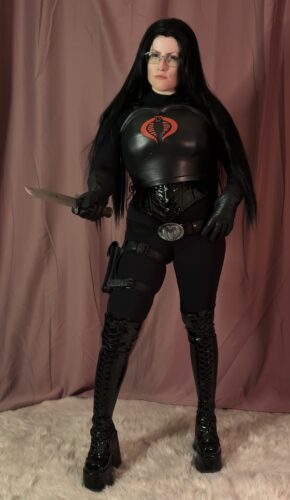We were a secret. I couldn’t tell anyone about this, not friends or family, except or my girlfriend, of course, because she was going to be coming with me. We’d long talked about making her a Baroness costume. She’s not, like, into G.I. Joe, but she loves cosplay like I do and the Baroness is just one of those long-running cosplay go-tos. She wanted to have a stab at it and this was the perfect opportunity. So, we built her a Baroness costume largely out of purchased items, but I did manage to make her a tactical breast plate out of EVA foam for a more cartoon-y look that would befit hanging out with the band.